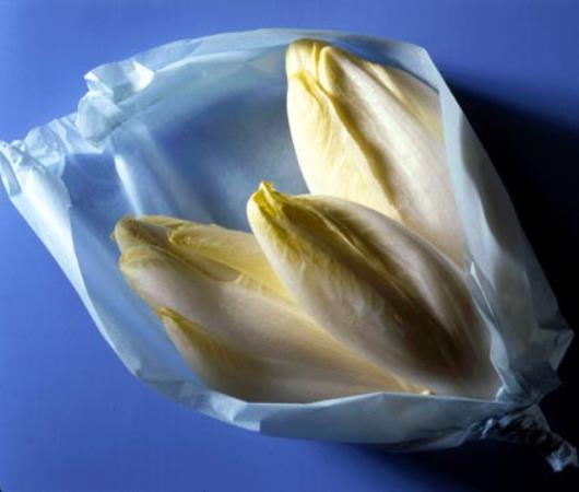 L'imbianchimento delle foglie si esegue raccogliendole e legandole con un filo di rafia. La varietà belga, Endivia Belga, si presenta a forma di grosso sigaro color crema perché fatta crescere al buio; questa tecnica consente alle foglie di rimanere bianche e più dolci al palato.
